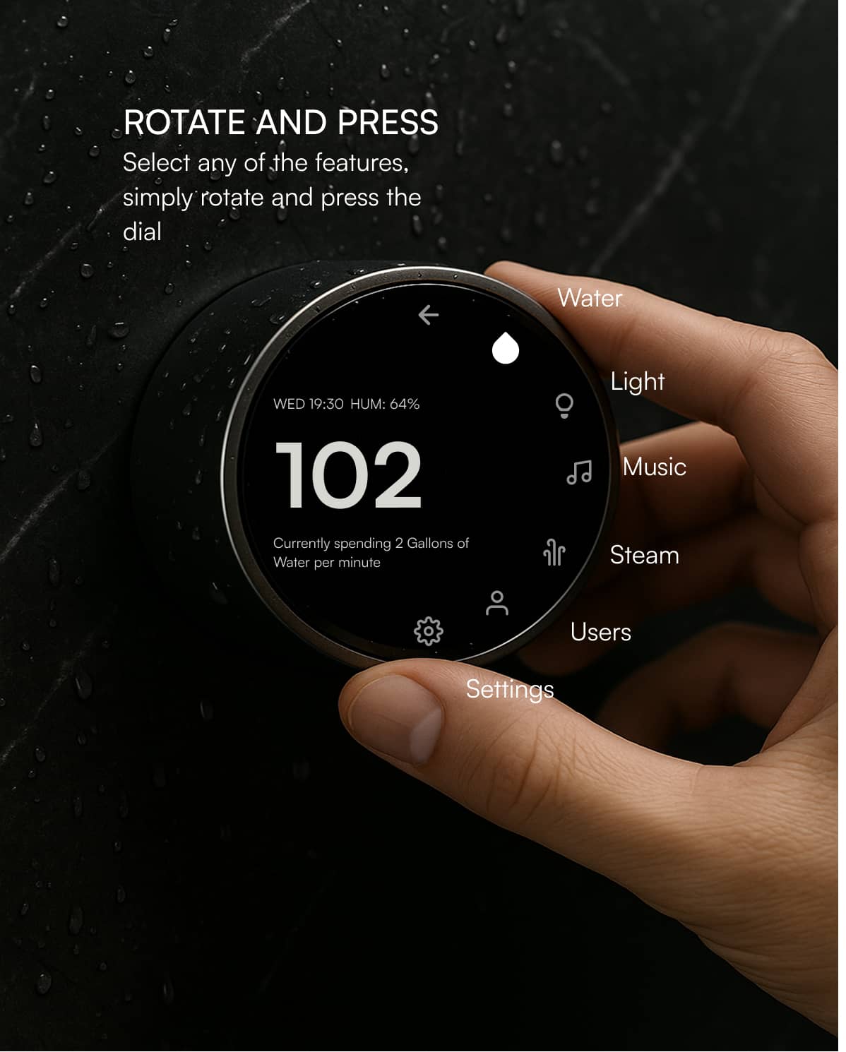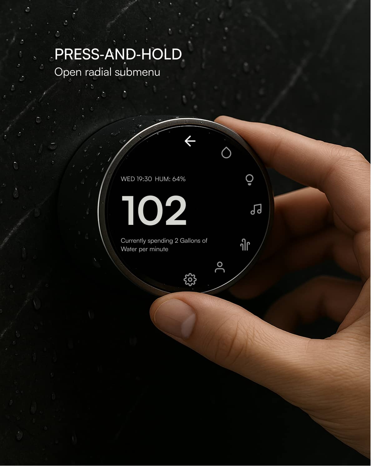 Eco Mode – Optional low-flow mode integrated directly into the Water screen