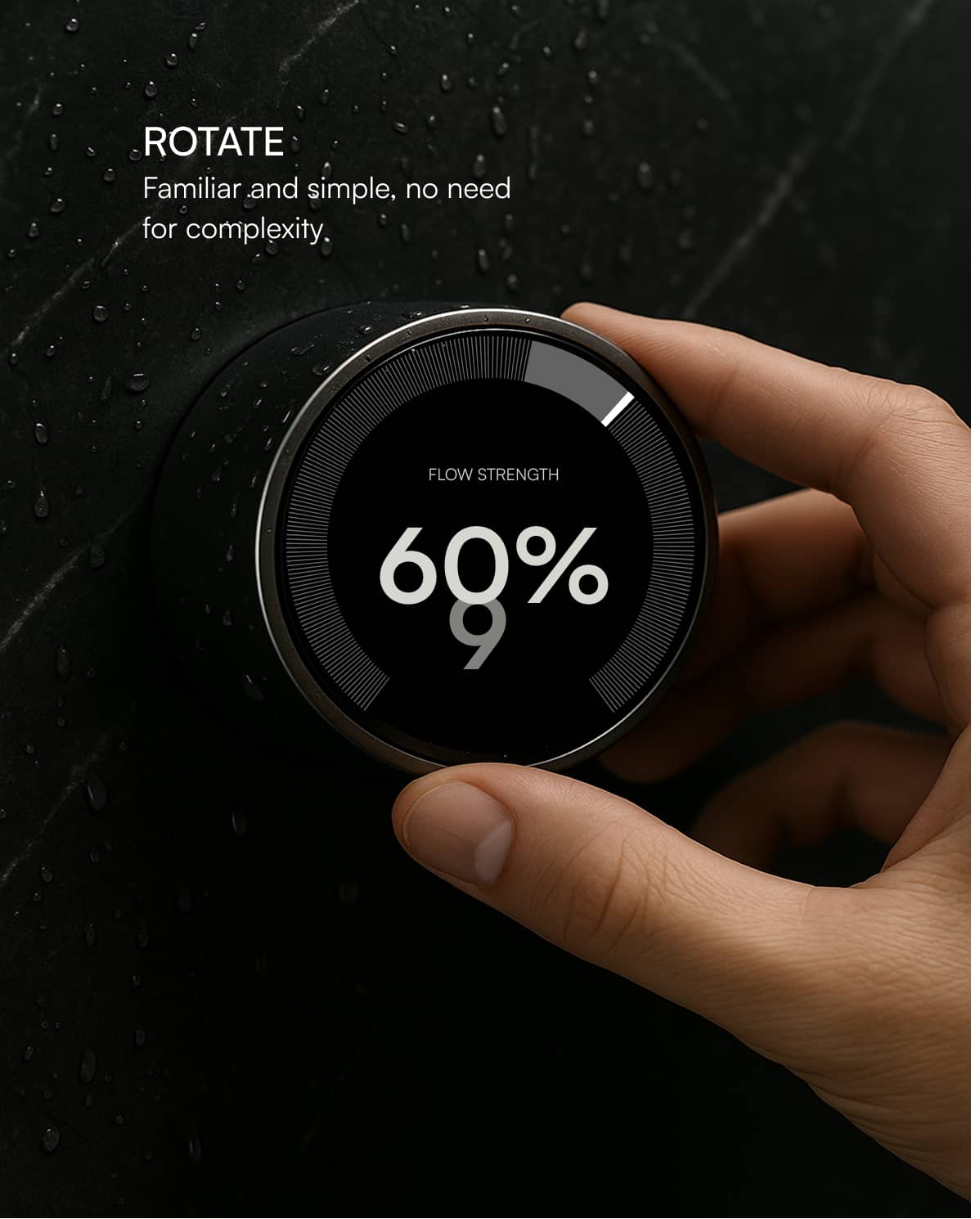 Mid-shower → you open the wand; dial auto-ramps pump to keep rainfall constant.